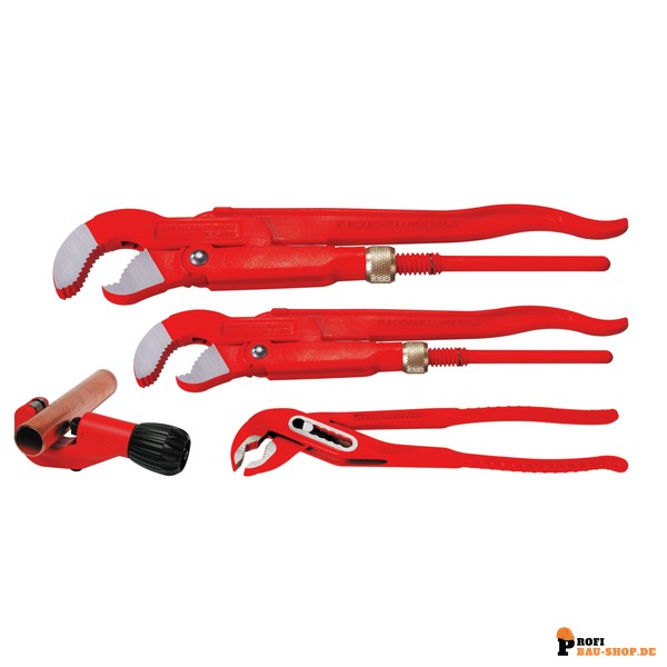 • Praxisgerechte Zusammenstellung von Rohrzangen und Rohrabschneidern