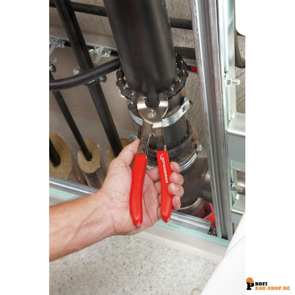 • Ideal für Zwangslagen: Der geringe Arbeitsradius und die flexible Kette ermöglichen problemloses Arbeiten an schwer zugänglichen Stellen, z.B. an parallel verlaufenden Rohren.