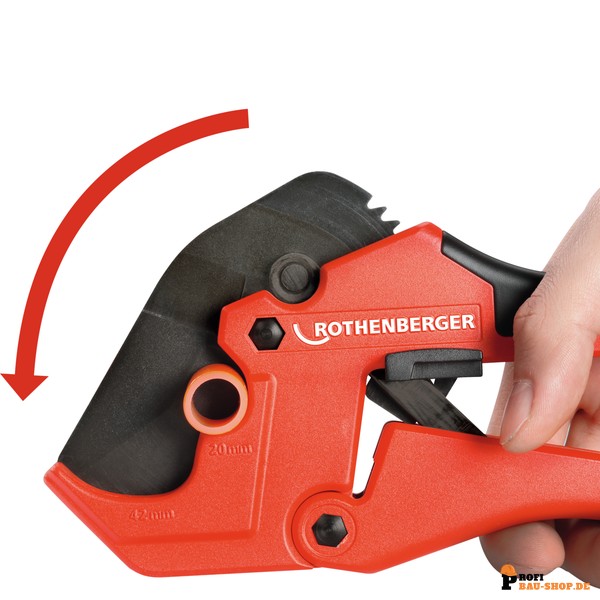 ROTHENBERGER ROCUT 42 TWIN CUT: Innovative Kunststoffrohrschere für präzise Direkt- und Ratschenschnitte von 0-42 mm