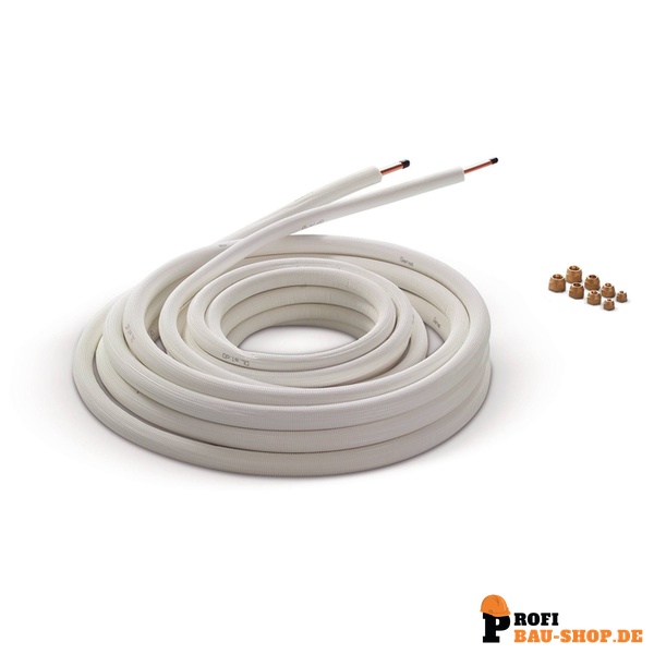 Zum Verbinden von stationären Raumklimainnengeräten und Außenteilen. Gebördelt, inkl. Überwurfmuttern.Es wird Spezialwerkzeug benötigt.