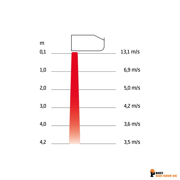 Temperatursteigung max. Heizleistung, max. Luftmenge15 °C