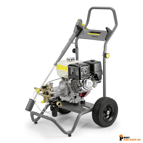 Der Kärcher HD 8/20 G ist Ihr Garant für maximale Unabhängigkeit, Flexibilität und Mobilität bei der Reinigung unter extremsten Bedingungen. Dieser benzinbetriebene Kaltwasser-Hochdruckreiniger liefert beeindruckende 200 Bar Druck und ist mit einem zuverlässigen Honda-Benzinmotor ausgestattet, der einen autarken Einsatz auch ohne vorhandene Stromversorgung ermöglicht. Seine besondere Stärke zeigt sich auch in der Fähigkeit, Wasser bei Bedarf direkt aus Gewässern ansaugen zu können, wodurch Sie nicht auf einen externen Wasseranschluss angewiesen sind. Der extrem robuste Grundrahmen trotzt selbst stärksten Beanspruchungen, während das ergonomische Rahmenkonzept mit pannensicheren Rädern den Transport selbst auf unebenem Gelände mühelos macht.