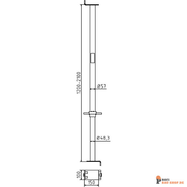 Kanalstrebe ?Perfekt? Ø 48 mm, für den Einsatz im Tiefbau, zum Verstreben und Abstützen von Kanalwänden, nach DIN 4124 mit Prüfzeichen TBG-4P 48, Spindel: Ø 48,3 mm, Außenrohr: Ø 57 mm, mit Auflagewinkel 100 mm x 150 mm auf beiden Seiten, braun lackiert, Gr. 3, 1,20 m - 2,10 m, 60,10 kN- 51,70 kN