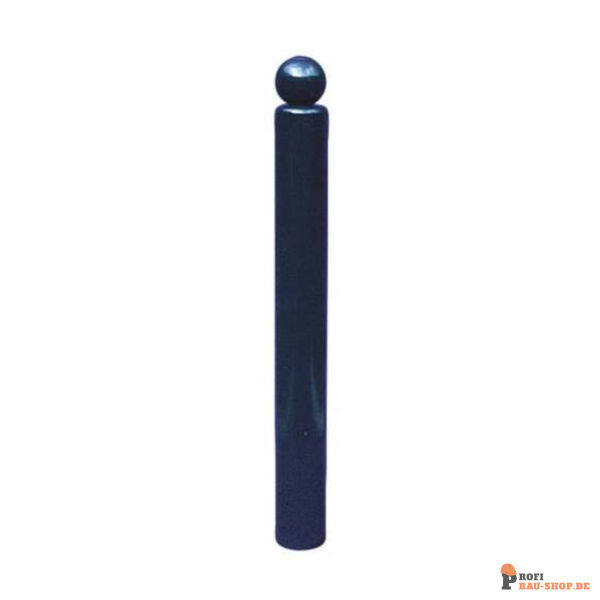 Stilpoller mit Kugelkopf, aus Stahlrohr Ø 102 mm, ca. 950 mm überflur, feuerverzinkt und anthrazitgrau (RAL 7016) beschichtet, ortsfest, zum Einbetonieren mit Erdanker, Gesamtlänge ca. 1300 mm, ohne öse