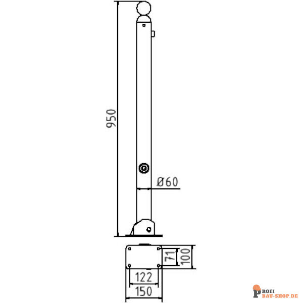 Die Absperr-Stilpfosten-Serie Ø 60 mm ist eine leichte, aber dennoch schmuckvolle Variante unserer Stilpoller. Absperr-Stilpfosten aus Stahlrundrohr Ø 60 mm, ca. 950 mm überflur, feuerverzinkt und anthrazitgrau (RAL 7016) beschichtet, umlegbar, selbsteinrastende Verriegelung, für Dübelbefestigung, mit Bodenplatte 100 x 150 mm, mit Dreikantverschluss nach DIN 3223, ohne öse
