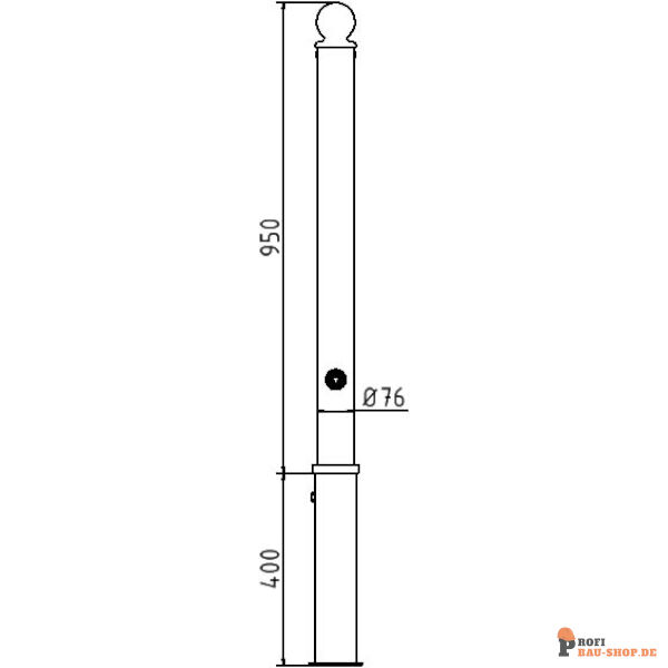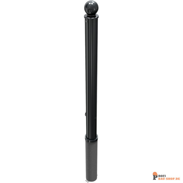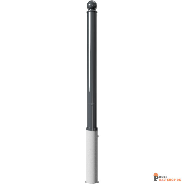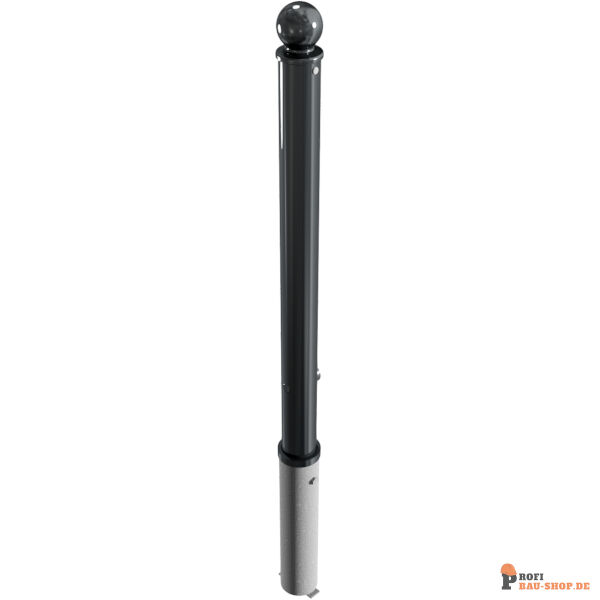 Absperr-Stilpfosten aus Stahlrohr Ø 76 mm, ca. 950 mm überflur, feuerverzinkt und anthrazitgrau (RAL 7016) beschichtet, herausnehmbar, selbsteinrastende Verriegelung, mit feuerverzinkter Bodenhülse Typ 476.40, ca. 400 mm Unterflur, mit Dreikantverschluss nach DIN 3223, ohne öse