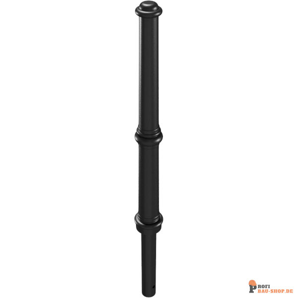 Alu-Stilpfosten, Aluminiumguss mit Stahlrohrkern, ca. 900 mm überflur, mattschwarz (RAL 9005 matt) beschichtet, ortsfest, zum Einbetonieren, mit Erdanker, Gesamtlänge ca. 1300 mm, ohne öse