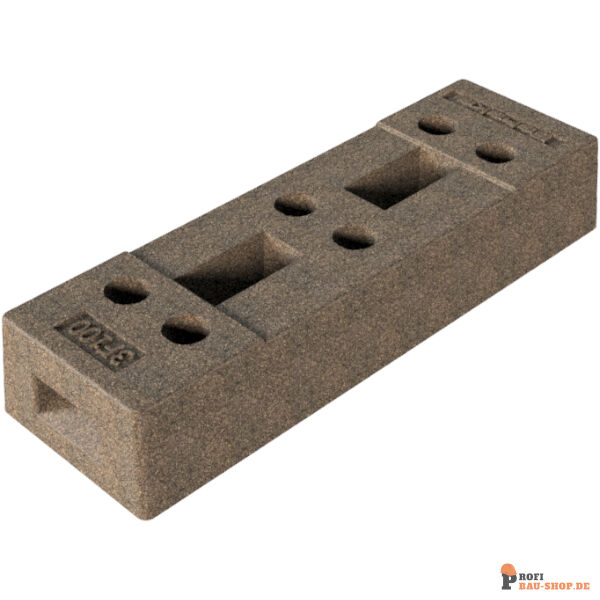 Bauzaunfuß aus Beton, für den standfesten Aufbau von Mobilzäunen, zum Einstecken der Bauzaunstandrohre, Länge: 700 mm, Höhe: 125 mm, Breite: 220 mm, mit 6 Löchern (Ø 42 mm), 36 kg