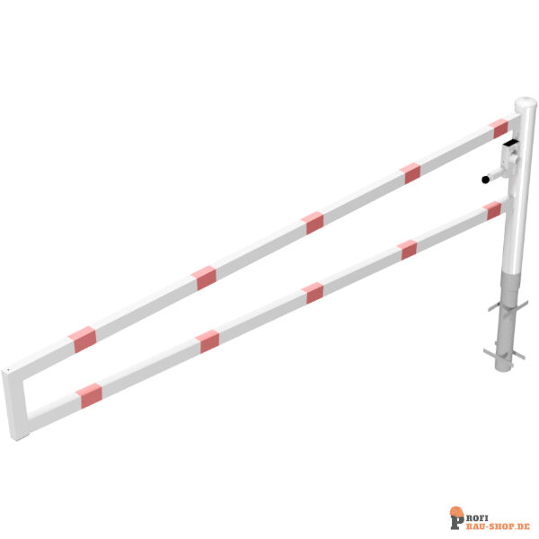 Horizontal schwenkbare Schranke ohne Auflagepfosten.
