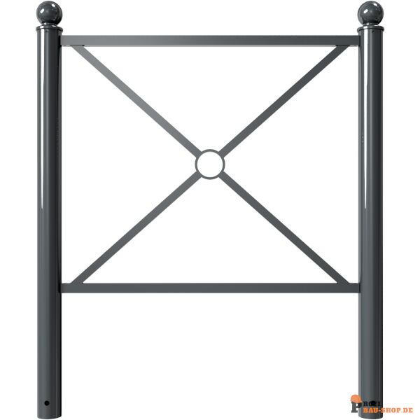 Stadtzaunelement, Senkrechte Stahlrohre Ø 76 mm, horizontale Stahlrohre 30 x 30 mm, diagonale Stahlrohre 25 x 25 mm, Gesamthöhe 1200 mm, feuerverzinkt und pulverbeschichtet DB 703, mit Kugelkopf, Länge: 1000 mm