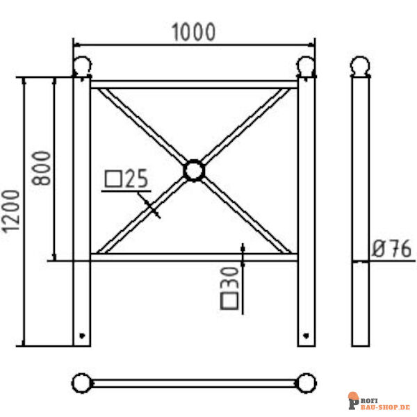feuerverzinkt, Gesamthöhe 1300mm Pfosten Ø 76mm , Querstreben 30 x 30mm, Diagonalstreben 25 x 25mm Beschichtet in RAL