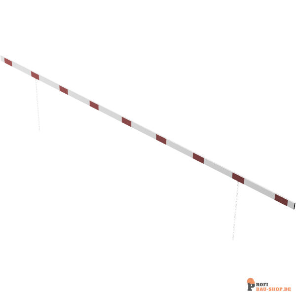 Höhenbegrenzer Barriere aus Aluminiumprofil Höhe 100mm, mit seitlichen Schutzkappen weiß beschichtet mit rot reflektierenden Streifen, inkl. 2 x 1,00mtr. Stahlkette, beidseitig reflektierend, Querrohrlänge: 6000 mm