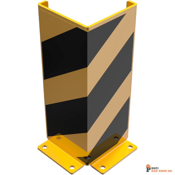 Anfahrschutzwinkel gemäß BGR234, für den individuellen Einsatz (Lagereinrichtungen, Regalstützen, etc.), mit verstärkten Kanten aus Stahlblech 6 mm, gelb pulverbeschichtet mit aufgebrachten schwarzen Streifen, zum Aufdübeln, Schenkellänge 160 mm, Höhe: 400 mm