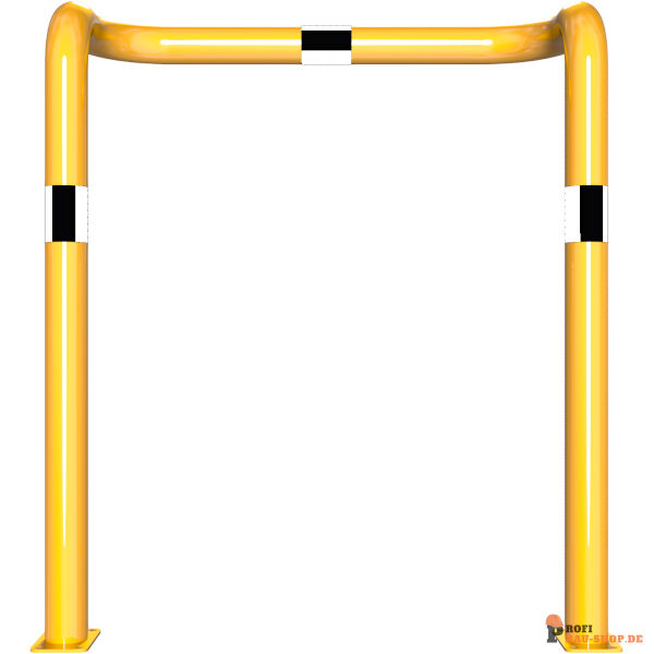 Stahlrohr Ø 76 mm, feuerverzinkt, gelb pulverbeschichtet mit schwarzen Warnstreifen, Rammschutzbügel, doppelseitig, vertiefte Ausführung ca. 450 mm, Gesamtbreite: 1000 mm, Höhe überflur: 1150 mm, für Dübelbefestigung