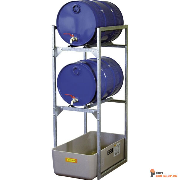 CEMO Fassregal Typ 120 mit Fassauflagen für 2 * 60 l Fässer, GFK-Auffangwanne