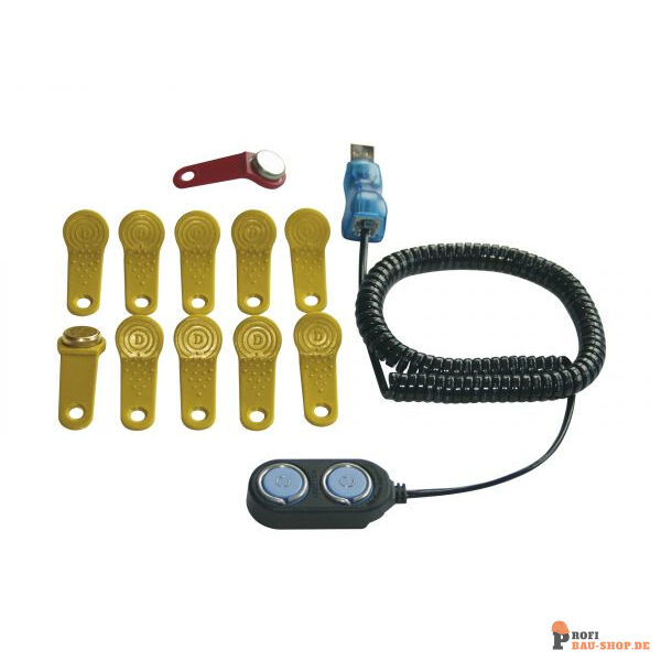 Schlüsselset mit 1 Masterschlüssel, 10 Benutzerschlüssel gelb, Schlüsselleser mit USB-Anschluss für kabellose Datenübertragung auf PC, für Zapfsäulen ab Baujahr Nov. 09