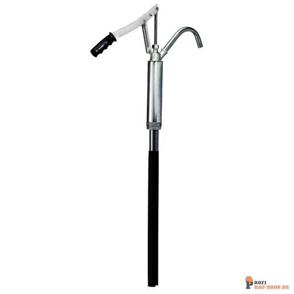 Stahlrohr-Fasspumpe mit Auslaufkrümmer für Fässer 60/200/220 l, Teleskop-Saugrohr 480-900 mm, Fördermedien: Öle bis SAE 90, selbstschmierende nicht aggressive Medien, Frostschutz unverdünnt, Heizöl, Diesel, Petroleum, Förderleistung: 0,3 l/Hub
