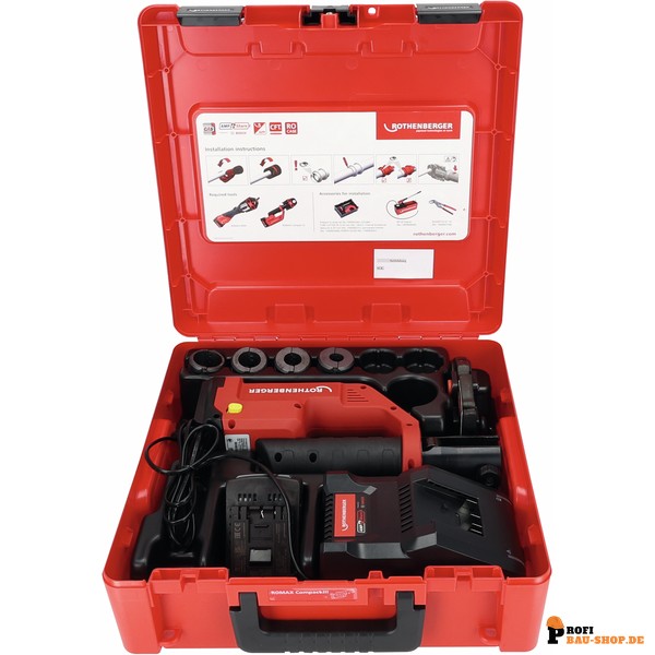 Bestellen Sie die ROTHENBERGER Pressmaschine Compact ROMAX COMPACT III Set RFZ16-20-25-32, 2Ah, EU, AMP jetzt unkompliziert und bequem online bei Profi-Bau-Shop.de und lassen Sie sie sich direkt liefern!