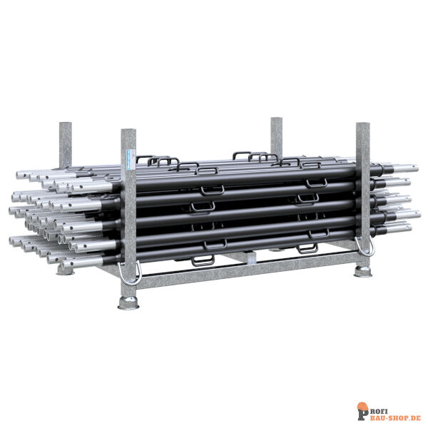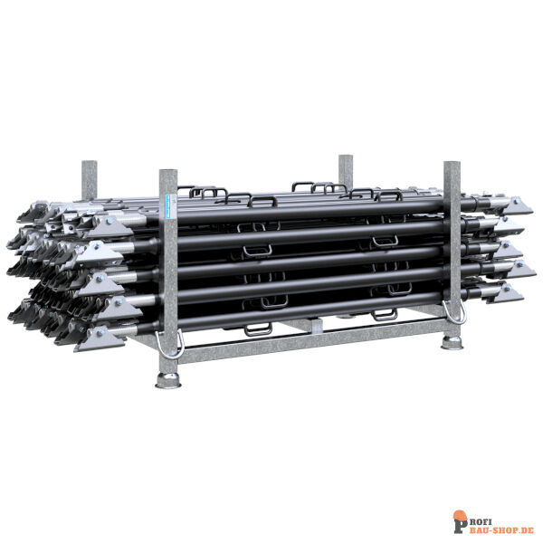 Schrägstütze S53, Verstellbereich: 2,10 - 3,71 m, Einstellung durch G-Haken - grob, bzw. durch Stützenschlosee - fein, verz. Innengewinde, beidseitiges Endgelenk, inkl. 5 Bohrungen Ø 10-20,5mm, für jede Schräg-und Winkellage, Ausführung: lackiert - VPE: 30 Stück. Empfehlung: Bei Bestellung / Versand mit der zugehörigen Palette Art.- Nr. 50115 können Transportspuren am Lack vermieden werden.