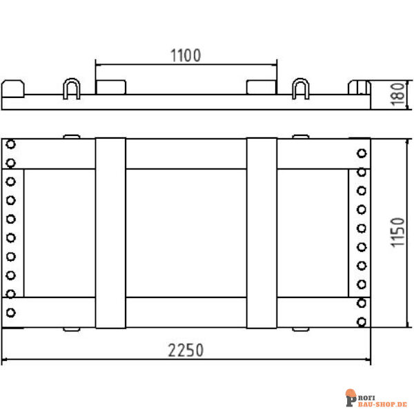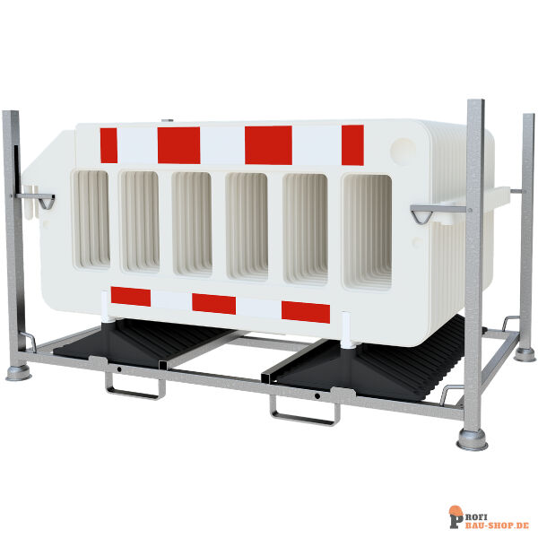Lager und Transporttraverse - GS geprüft für Schrankenzäune in 2,00 m länge sowie Bauzäune in 2,20 m länge 4-seitig befahrbar Konstruktion aus 180 x 90 mm Profil Aufnahmekapazität: 20 Stk. Aufnahmehülsen aus Ø 48mm Rundrohr Länge: 2,00 m Ausführung: verzinkt
