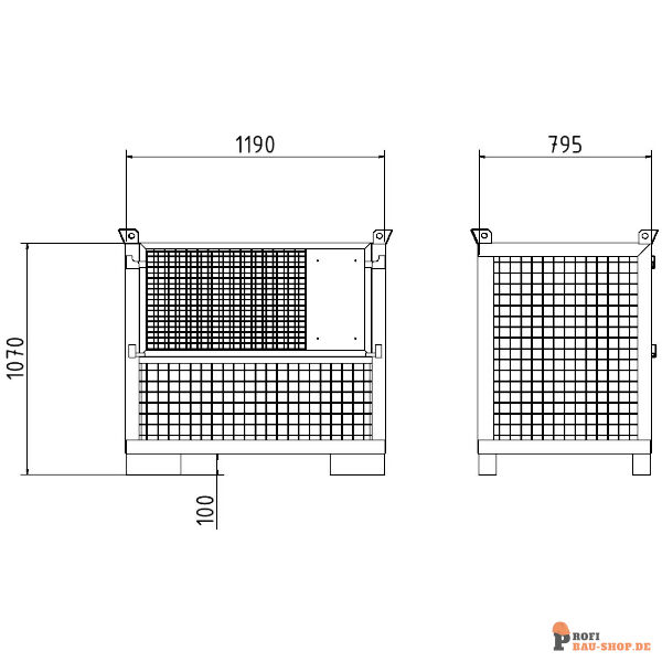 EURO Gitterbox ·für Kran und Staplerbetrieb geeignet ·mit einem robusten Stahlboden ·Ausführung: verzinkt ·stapelbar bis max. 5 Gitterboxen ·Tragkraft max. 1500 Kg ·Auflast max. 6000 Kg ·Laderaum 0,75m³ ·Seitenteil zur Hälfte aufklappbar für ein leichtes Be- und Entladen ·Maße: 1200 mm x 800 mm x 1074 mm
